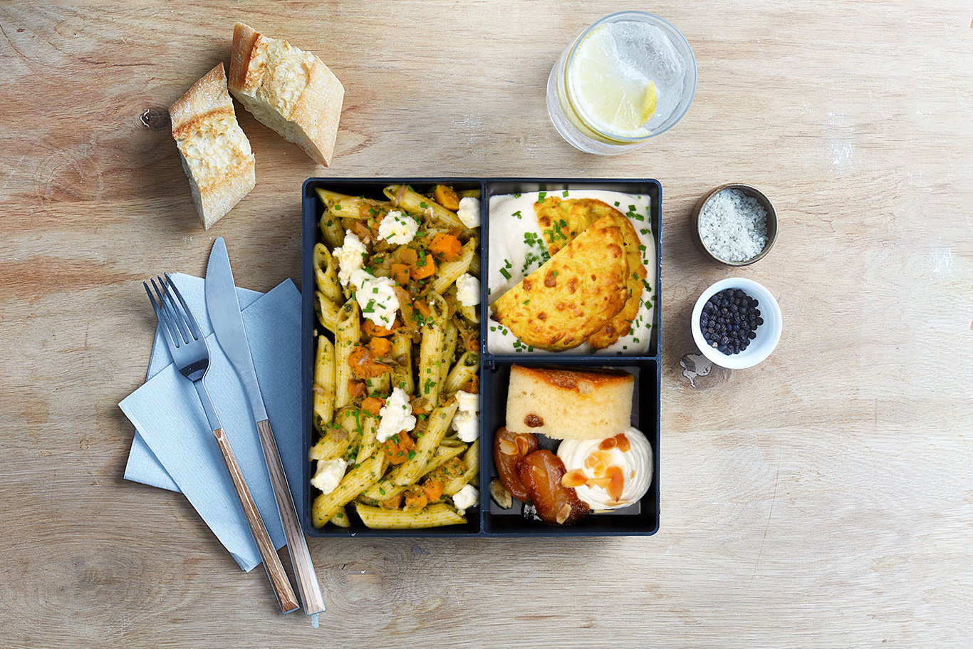 Penne au pesto de mâche, ratatouille d’hiver (Végétarien) – SQUARE